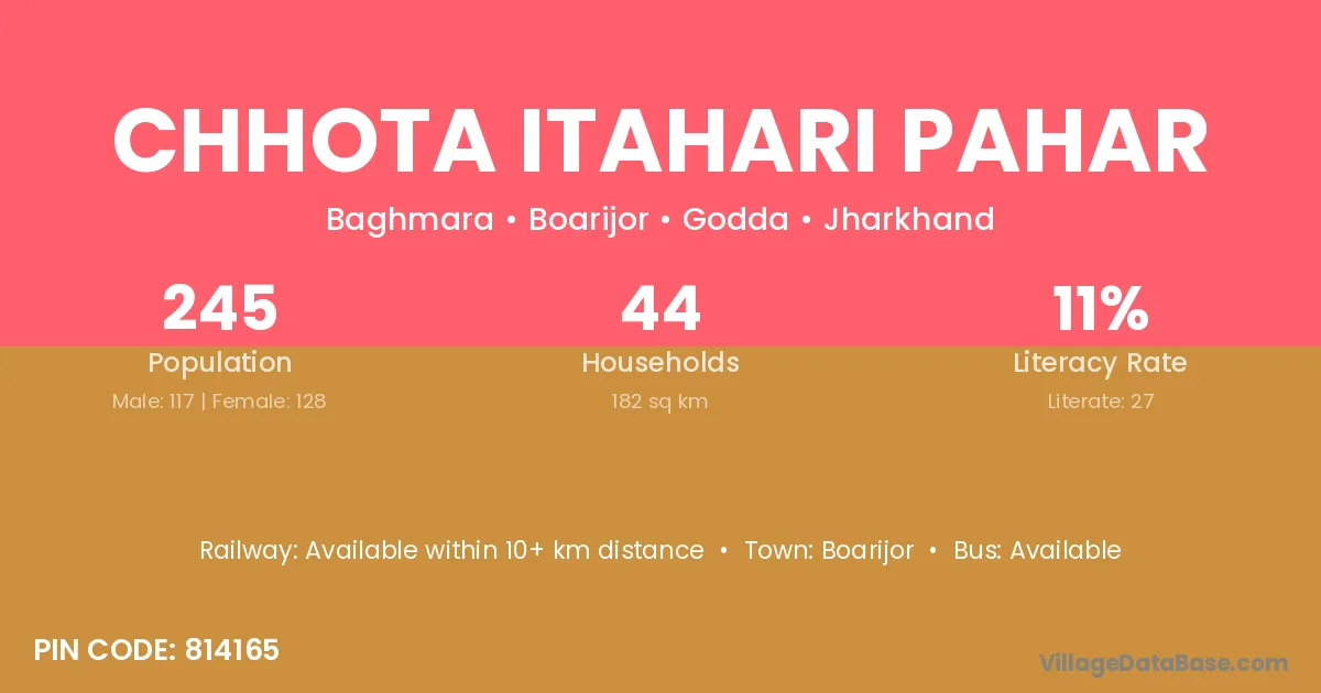 Chhota Itahari Pahar village has a total population of 245 people, of which 117 are males and 128 are females.