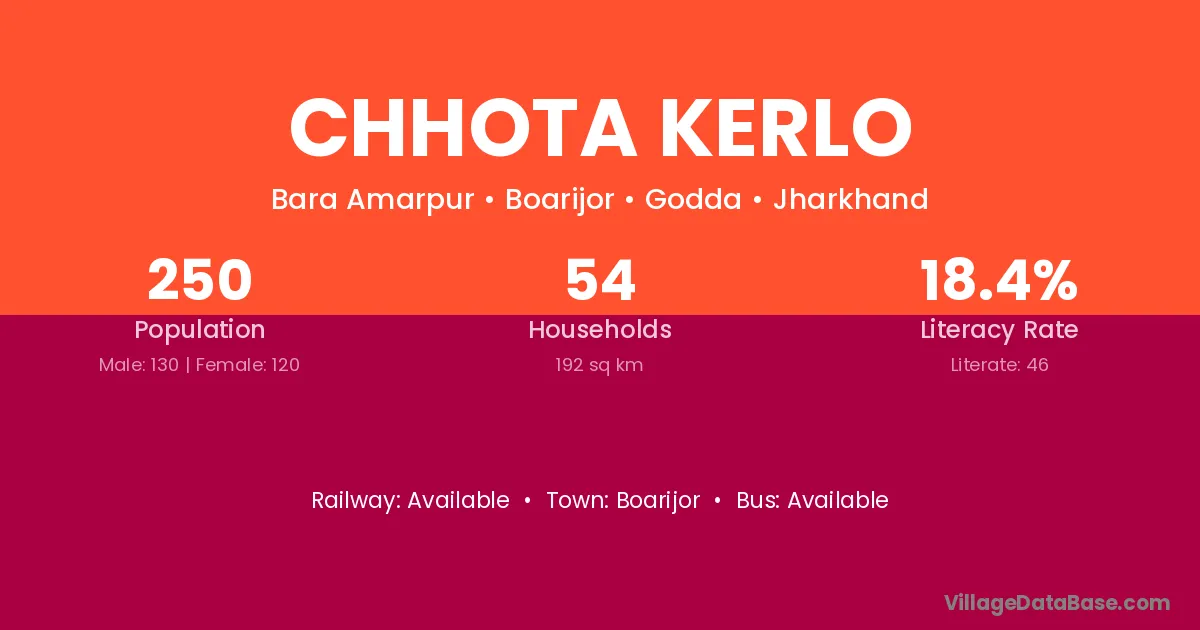 The literacy rate of Chhota Kerlo village is 18.40%. Male literacy stands at 26.15% and female literacy at 10.00%.
