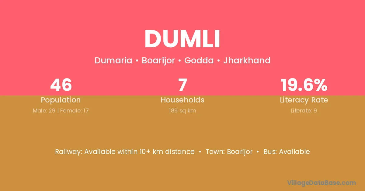 Dumli village is located in the Boarijor Subdivision of the Godda district in Jharkhand .