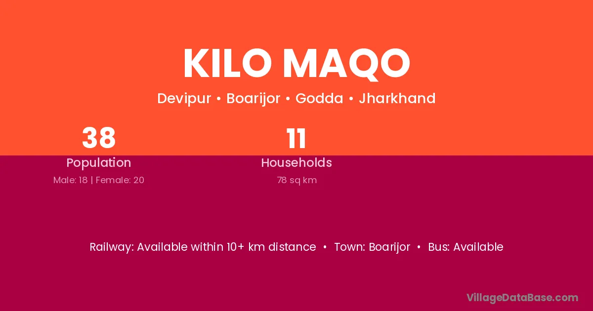 Kilo Maqo village has a total population of 38 people, of which 18 are males and 20 are females.
