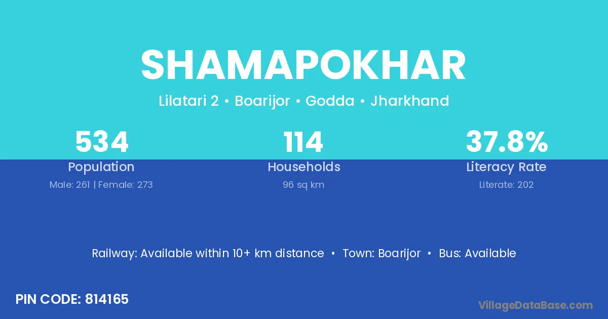 According to Census 2011 information, the village code of Shamapokhar village is 814165.