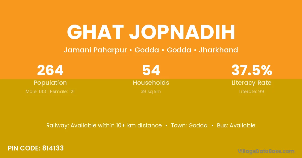 Ghat Jopnadih village has a total population of 264 people, of which 143 are males and 121 are females.