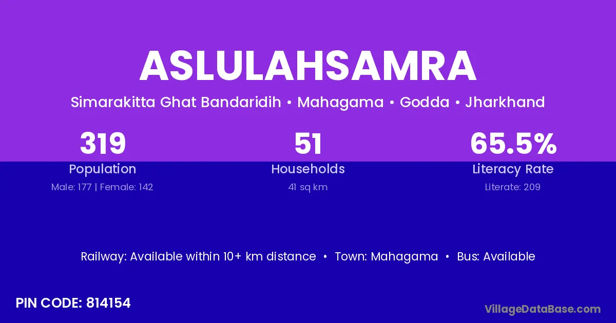 According to Census 2011 information, the village code of Aslulahsamra village is 814154.