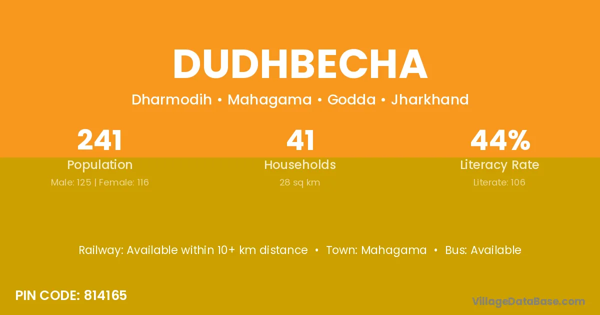 Mahagama is the nearest town to Dudhbecha village for major economic activities