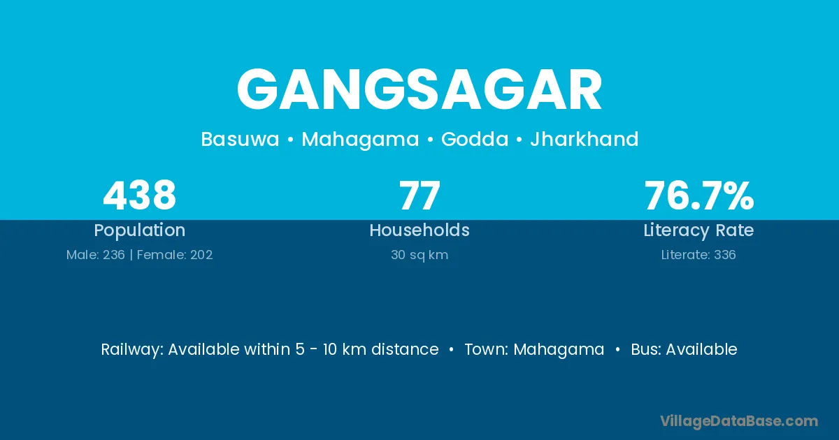 Gangsagar village has a total population of 438 people, of which 236 are males and 202 are females.