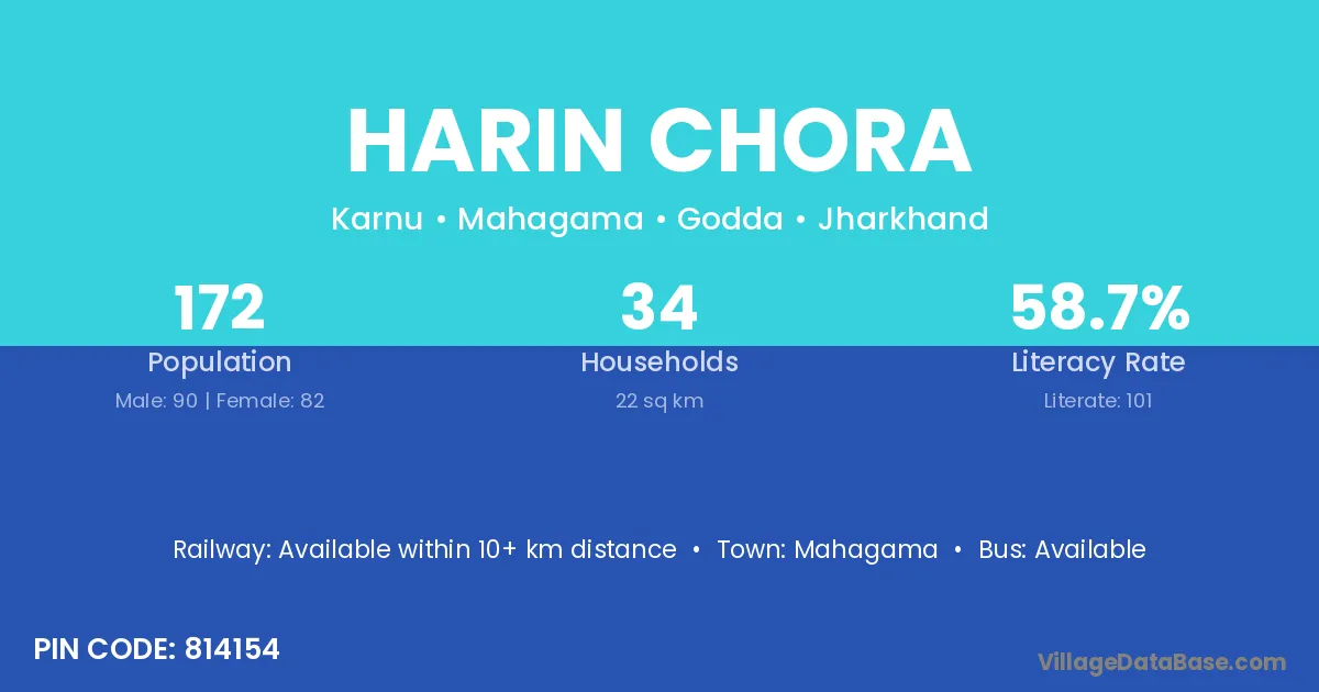 Mahagama is the nearest town to Harin Chora village for major economic activities