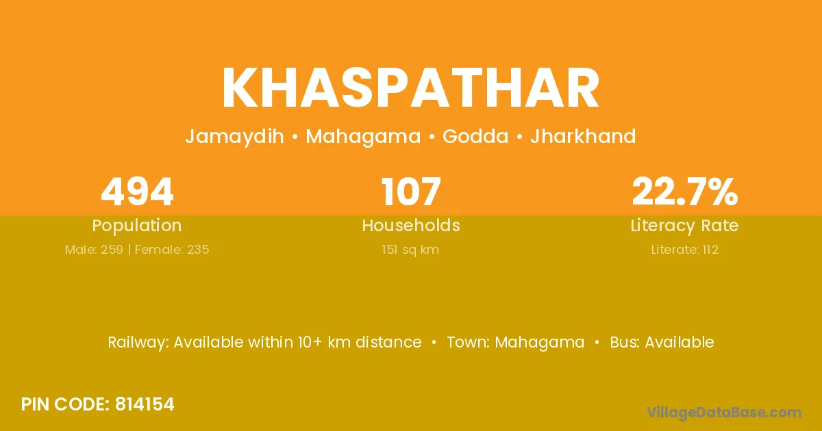 Mahagama is the nearest town to Khaspathar village for major economic activities