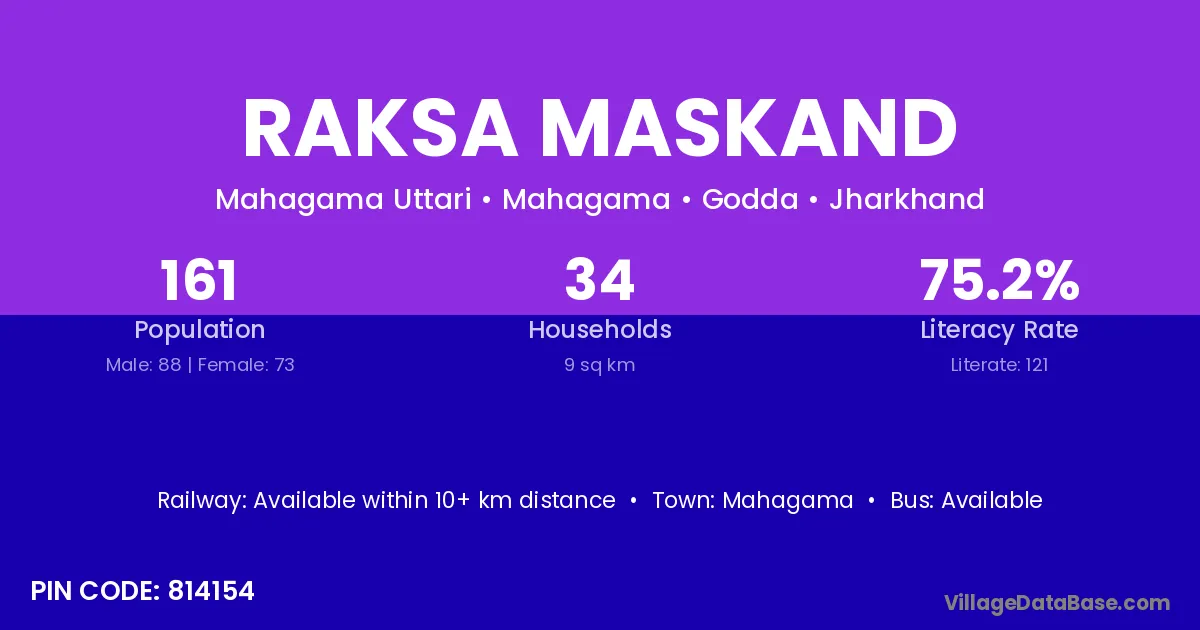 Mahagama is the nearest town to Raksa Maskand village for major economic activities