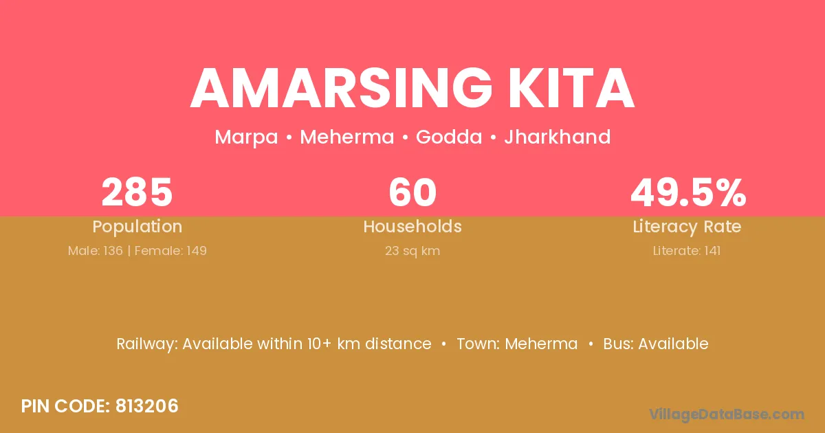 Amarsing Kita village has a total population of 285 people, of which 136 are males and 149 are females.