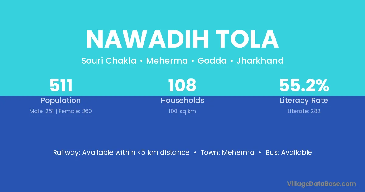 Nawadih Tola village has a total population of 511 people, of which 251 are males and 260 are females.