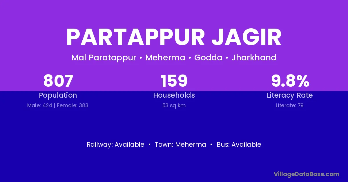 Partappur Jagir village has a total population of 807 people, of which 424 are males and 383 are females.