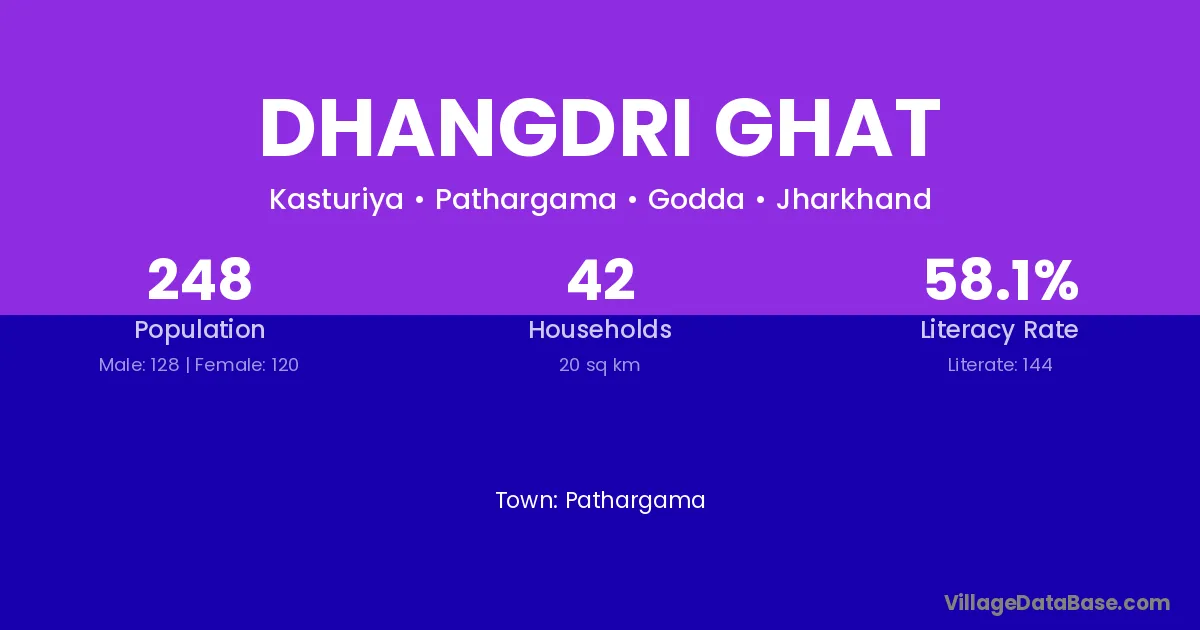 Dhangdri Ghat village has a total population of 248 people, of which 128 are males and 120 are females.
