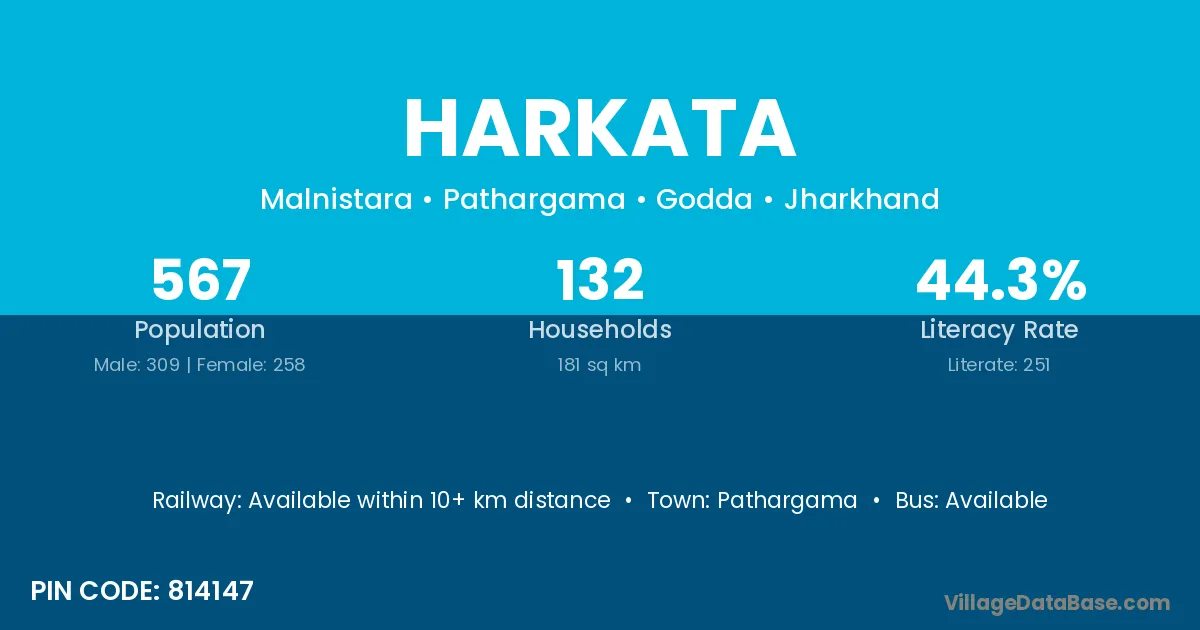 According to Census 2011 information, the village code of Harkata village is 814147.