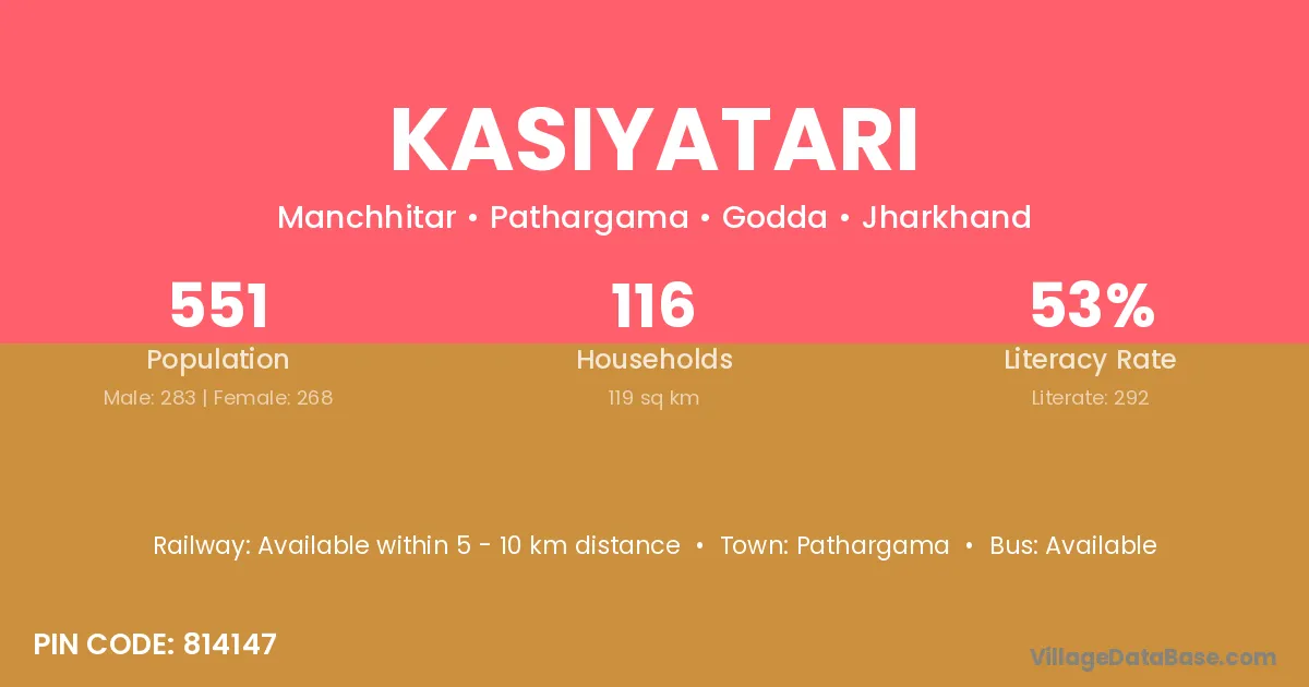 Kasiyatari village has a total population of 551 people, of which 283 are males and 268 are females.
