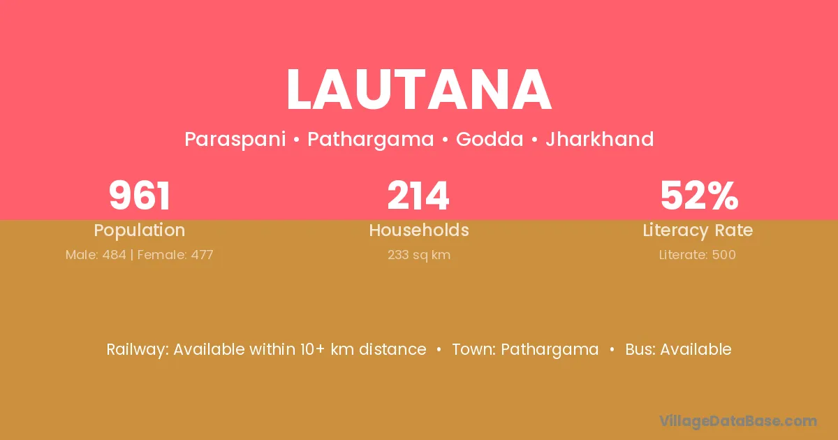Lautana village has a total population of 961 people, of which 484 are males and 477 are females.