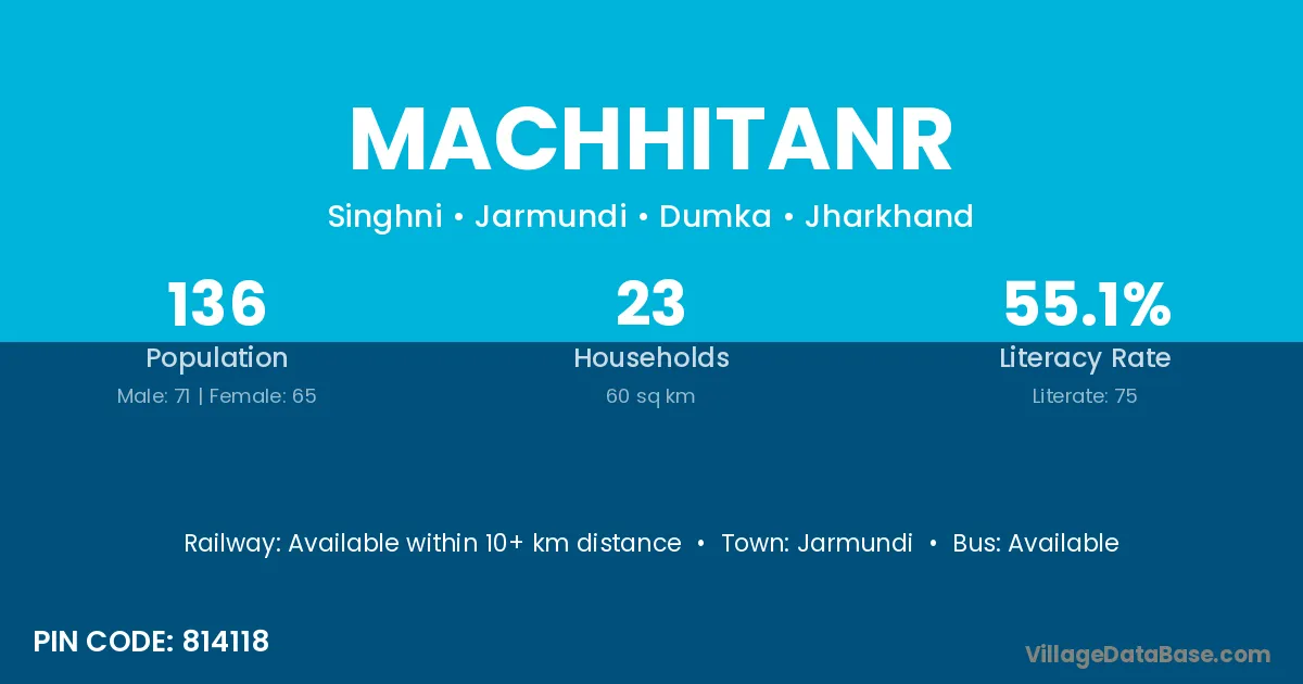 Machhitanr village has a total population of 1,013 people, of which 509 are males and 504 are females.