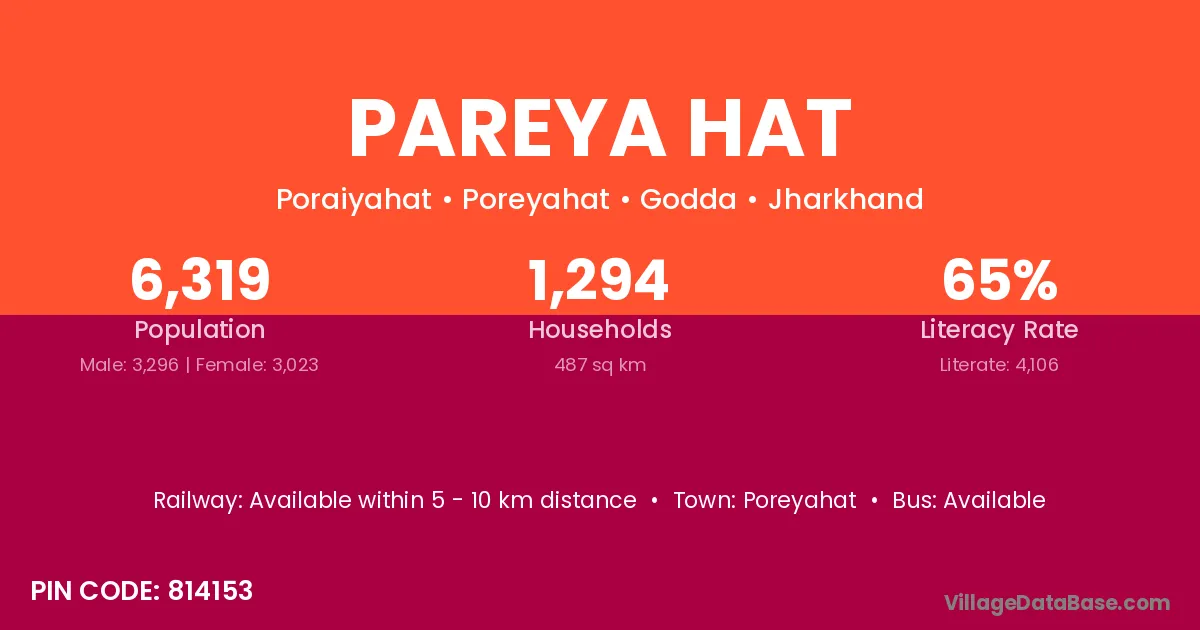 Pareya Hat village is located in the Poreyahat Subdivision of the Godda district in Jharkhand .