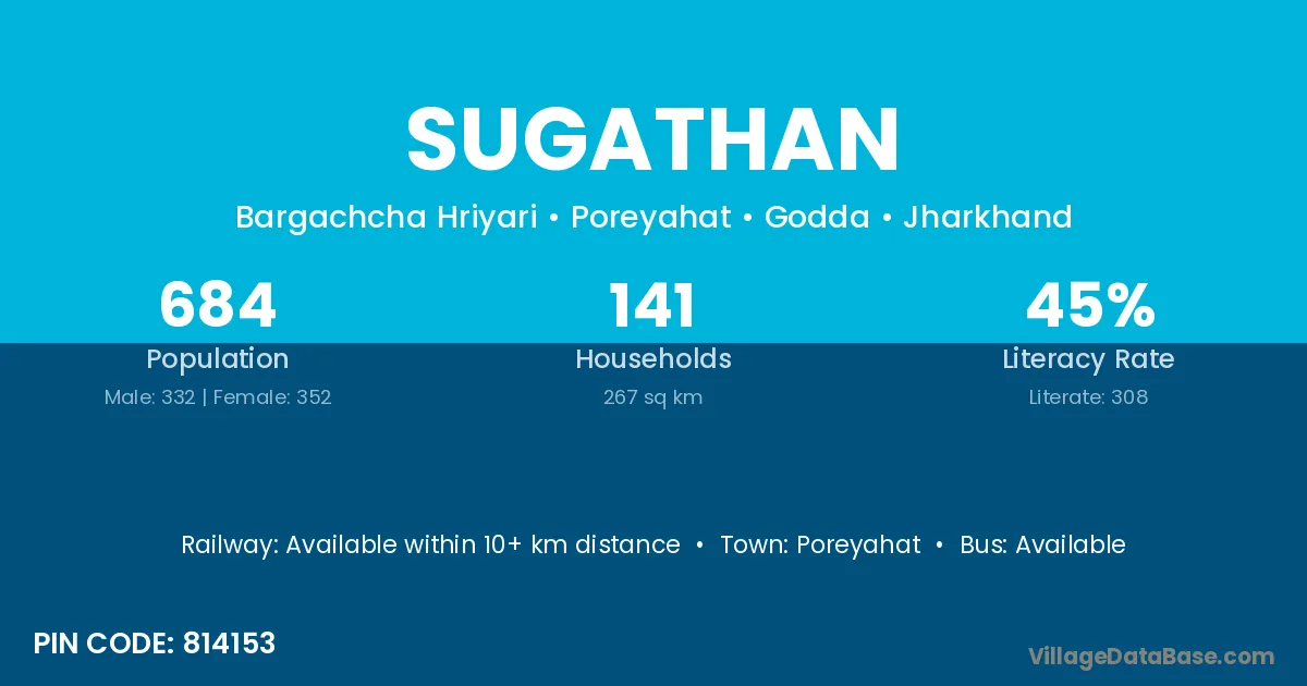 Sugathan village is located in the Poreyahat Subdivision of the Godda district in Jharkhand .