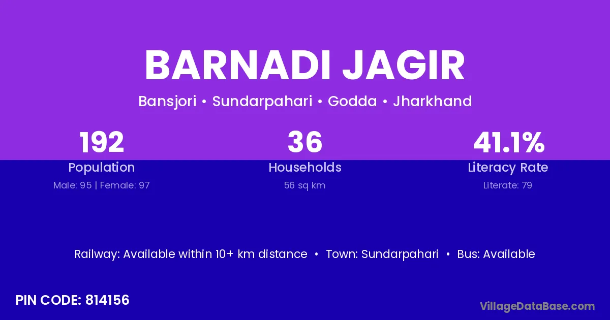 Sundarpahari is the nearest town to Barnadi Jagir village for major economic activities