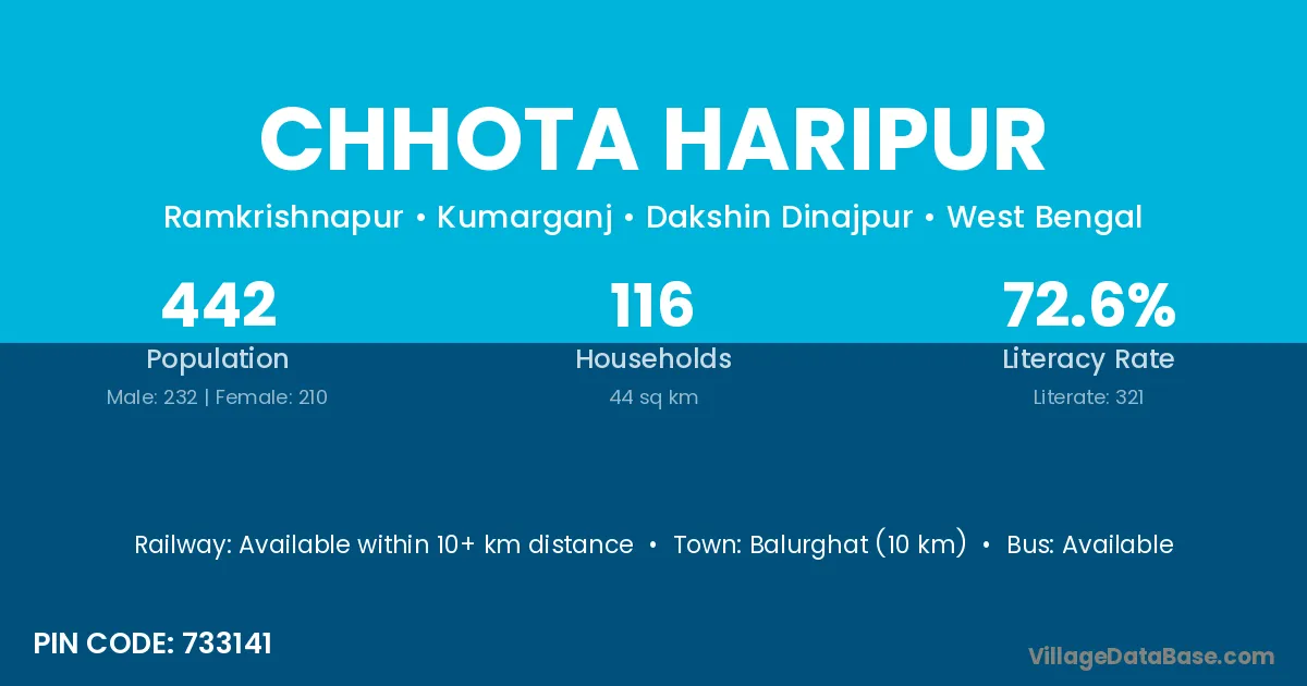 Chhota Haripur village has a total population of 250 people, of which 117 are males and 133 are females.