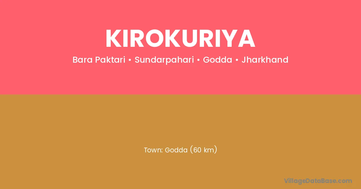Godda (60 km) is the nearest town to Kirokuriya village for major economic activities and is located approximately 60 km away.