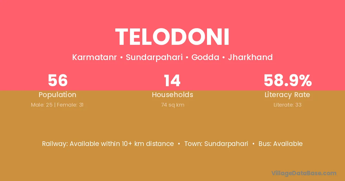 Sundarpahari is the nearest town to Telodoni village for major economic activities