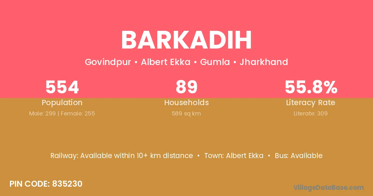 Albert Ekka is the nearest town to Barkadih village for major economic activities