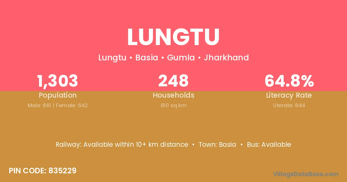 Lungtu village is located in the Basia Subdivision of the Gumla district in Jharkhand .
