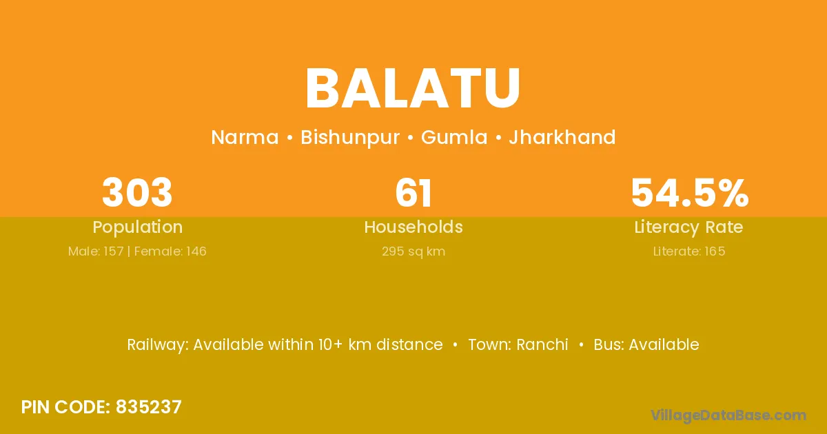 Balatu village has a total population of 303 people, of which 157 are males and 146 are females.