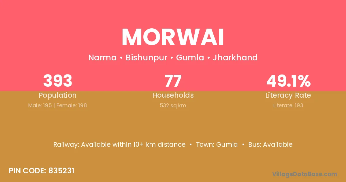 Morwai village has a total population of 393 people, of which 195 are males and 198 are females.