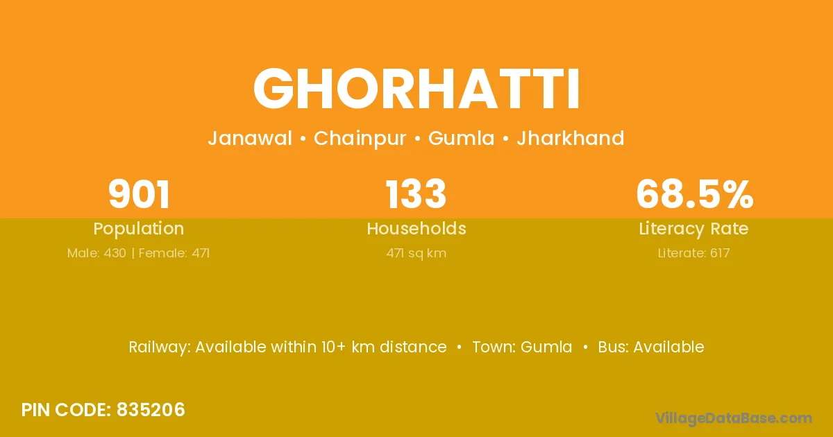 Gumla is the nearest town to Ghorhatti village for major economic activities