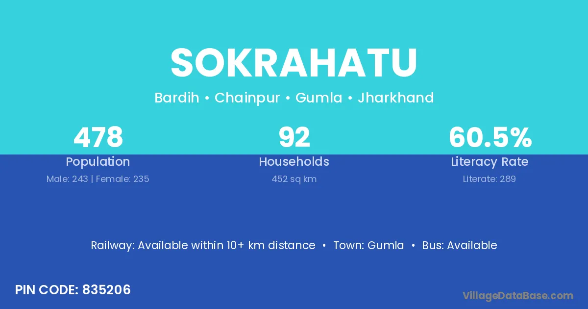 Gumla is the nearest town to Sokrahatu village for major economic activities