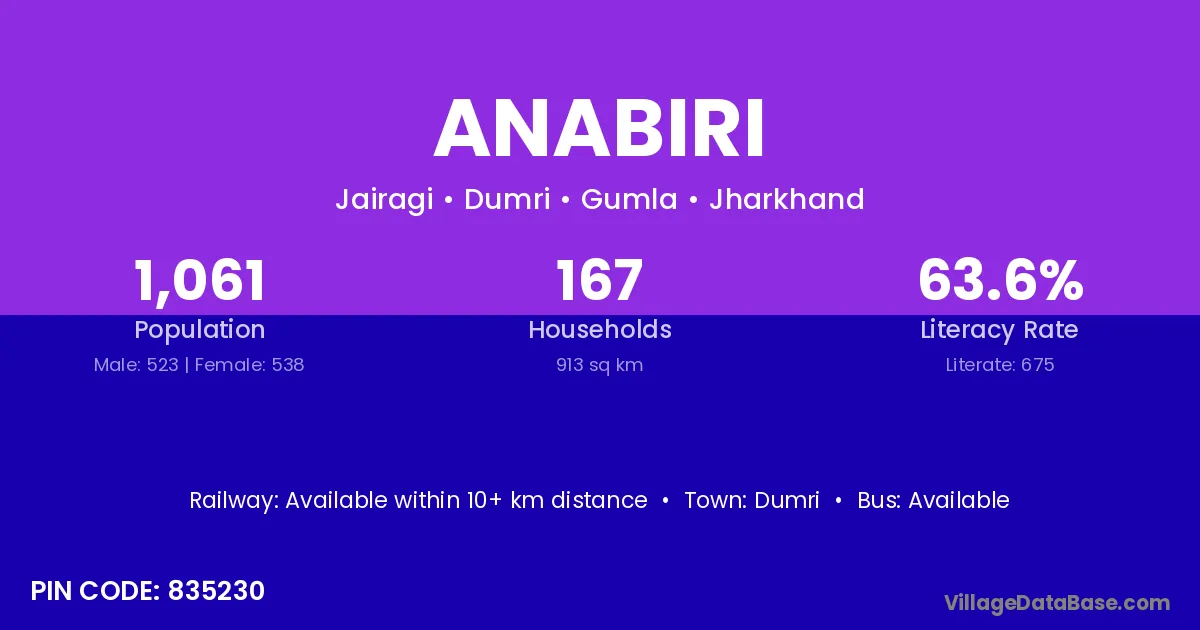 Anabiri village is located in the Dumri Subdivision of the Gumla district in Jharkhand .