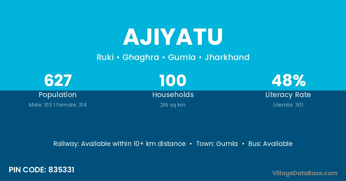 Gumla is the nearest town to Ajiyatu village for major economic activities