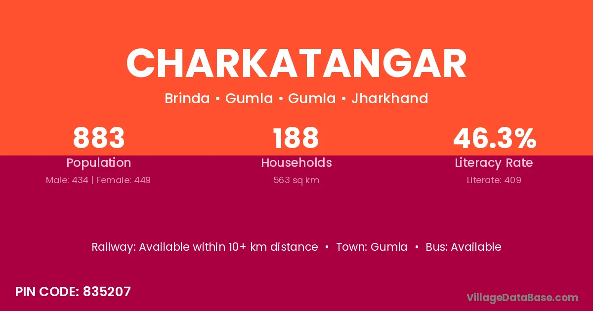 Charkatangar village has a total population of 883 people, of which 434 are males and 449 are females.