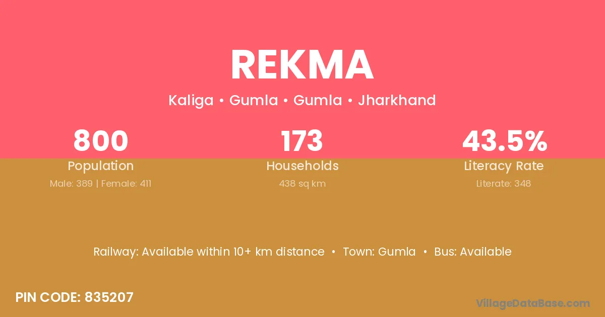 Gumla is the nearest town to Rekma village for major economic activities