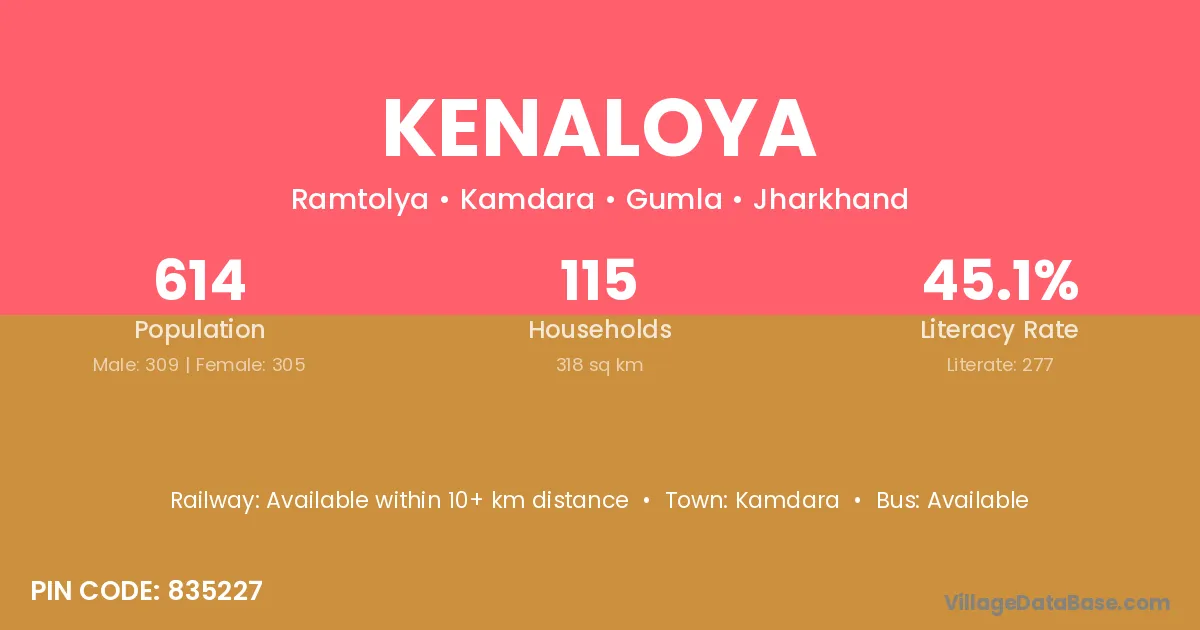 Kenaloya village has a total population of 614 people, of which 309 are males and 305 are females.