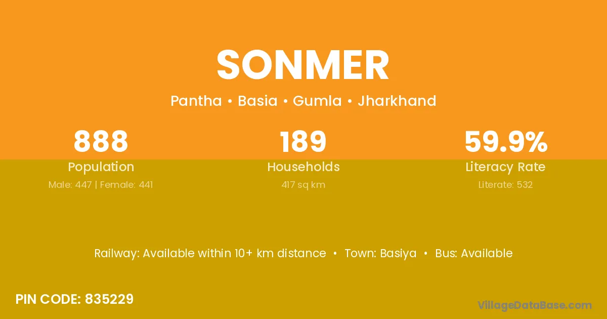According to Census 2011 information, the village code of Sonmer village is 835227.
