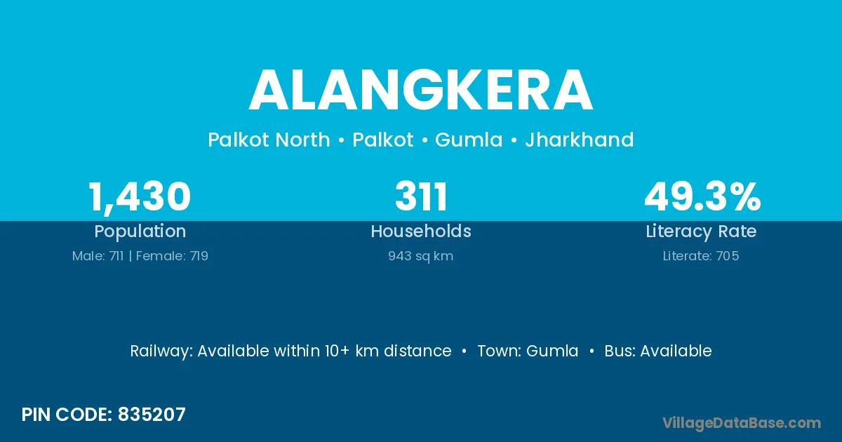 Alangkera village has a total population of 1,430 people, of which 711 are males and 719 are females.