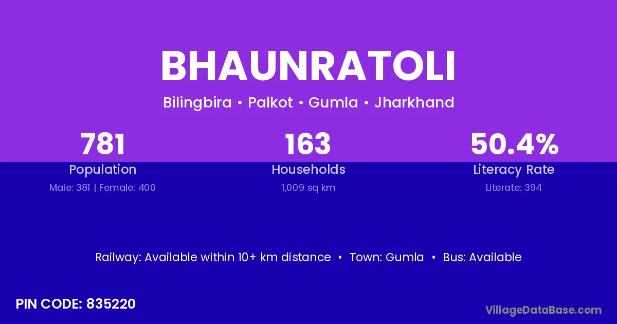 Gumla is the nearest town to Bhaunratoli village for major economic activities