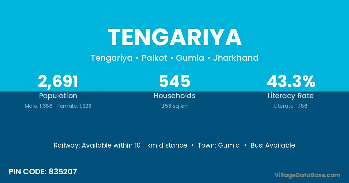 Gumla is the nearest town to Tengariya village for major economic activities