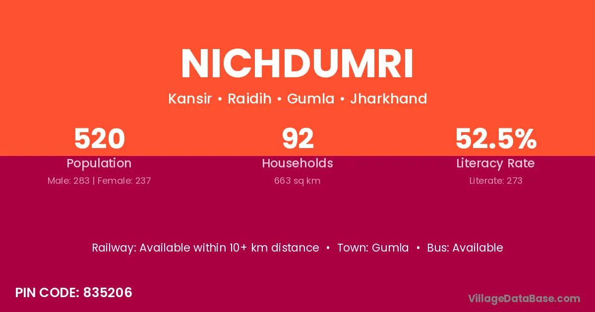 Gumla is the nearest town to Nichdumri village for major economic activities