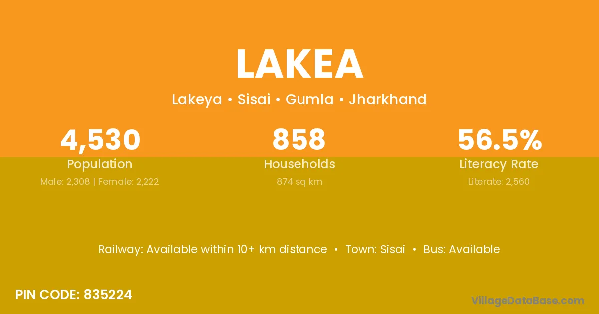 According to Census 2011 information, the village code of Lakea village is 835224.