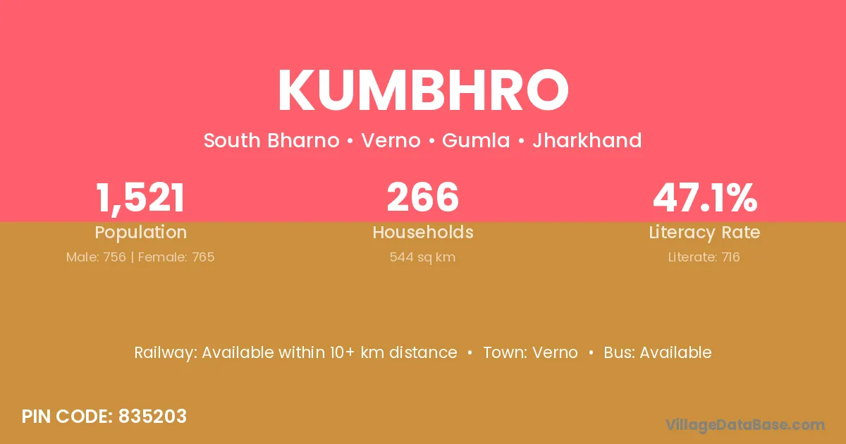 Kumbhro village is located in the Verno Subdivision of the Gumla district in Jharkhand .