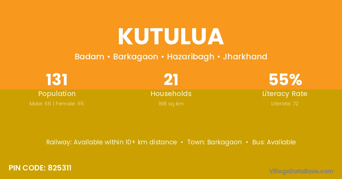 Kutulua village is located in the Barkagaon Subdivision of the Hazaribagh district in Jharkhand .