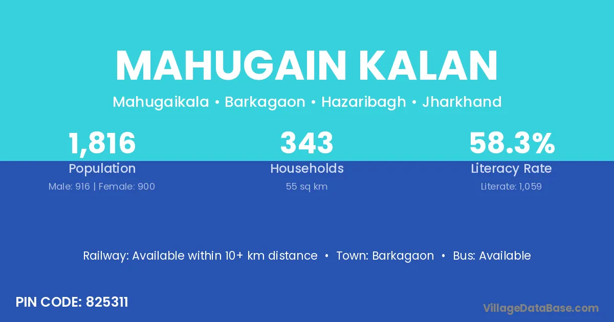 Barkagaon is the nearest town to Mahugain Kalan village for major economic activities
