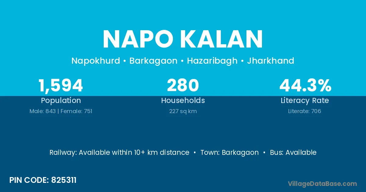 Barkagaon is the nearest town to Napo Kalan village for major economic activities