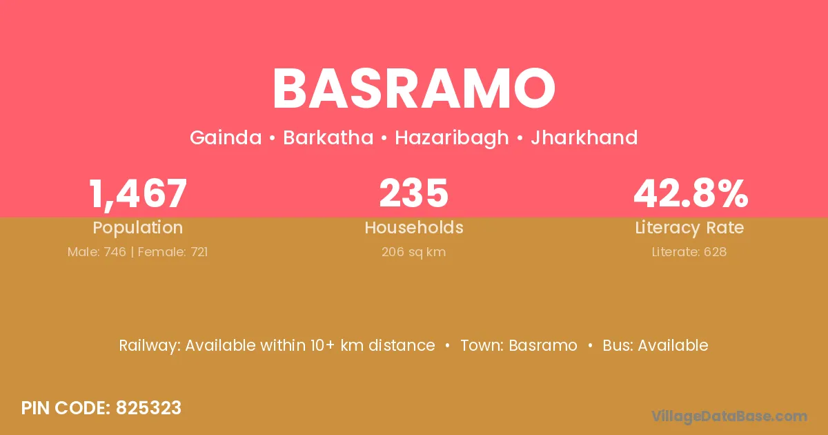 Basramo village has a total population of 1,467 people, of which 746 are males and 721 are females.