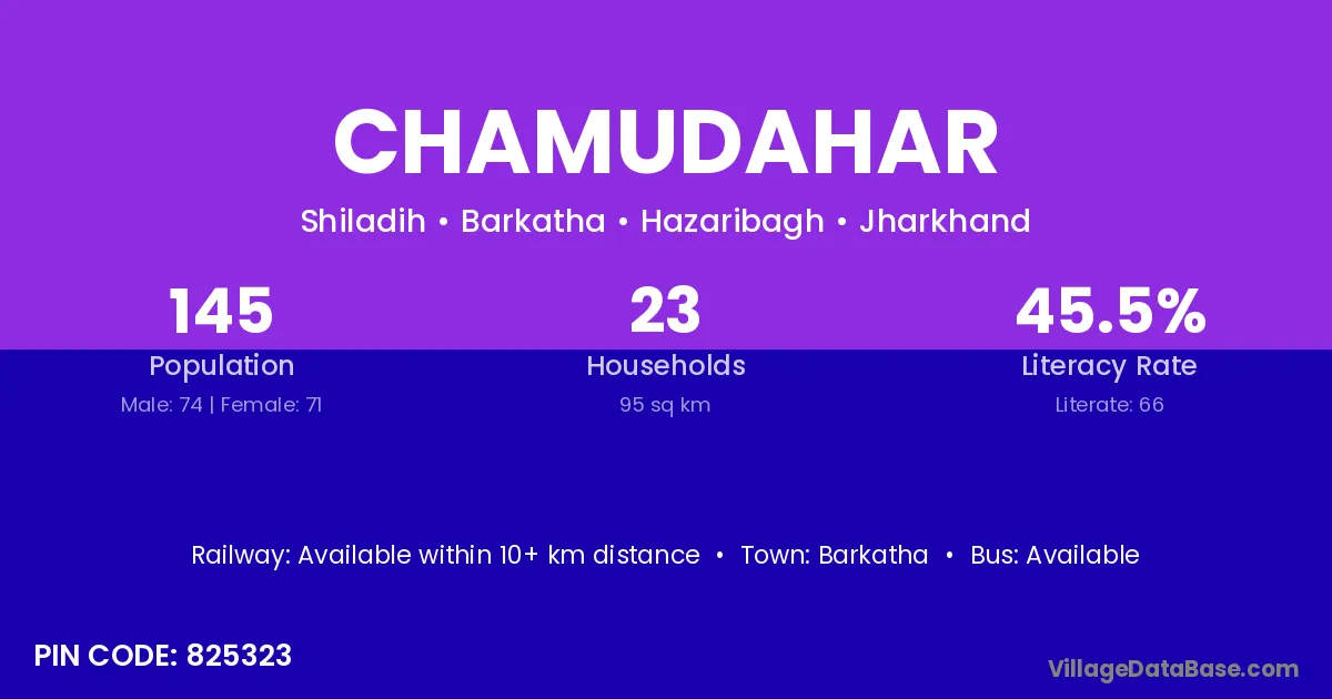 Chamudahar village has a total population of 145 people, of which 74 are males and 71 are females.