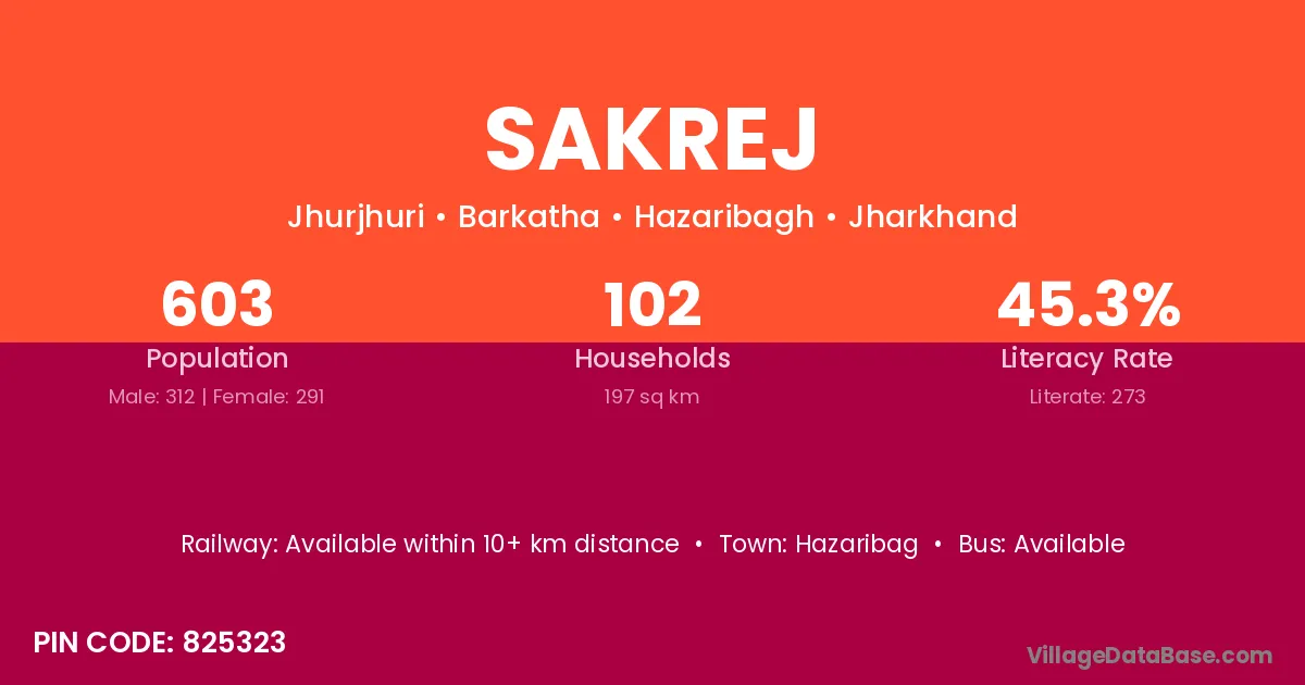 Hazaribag is the nearest town to Sakrej village for major economic activities